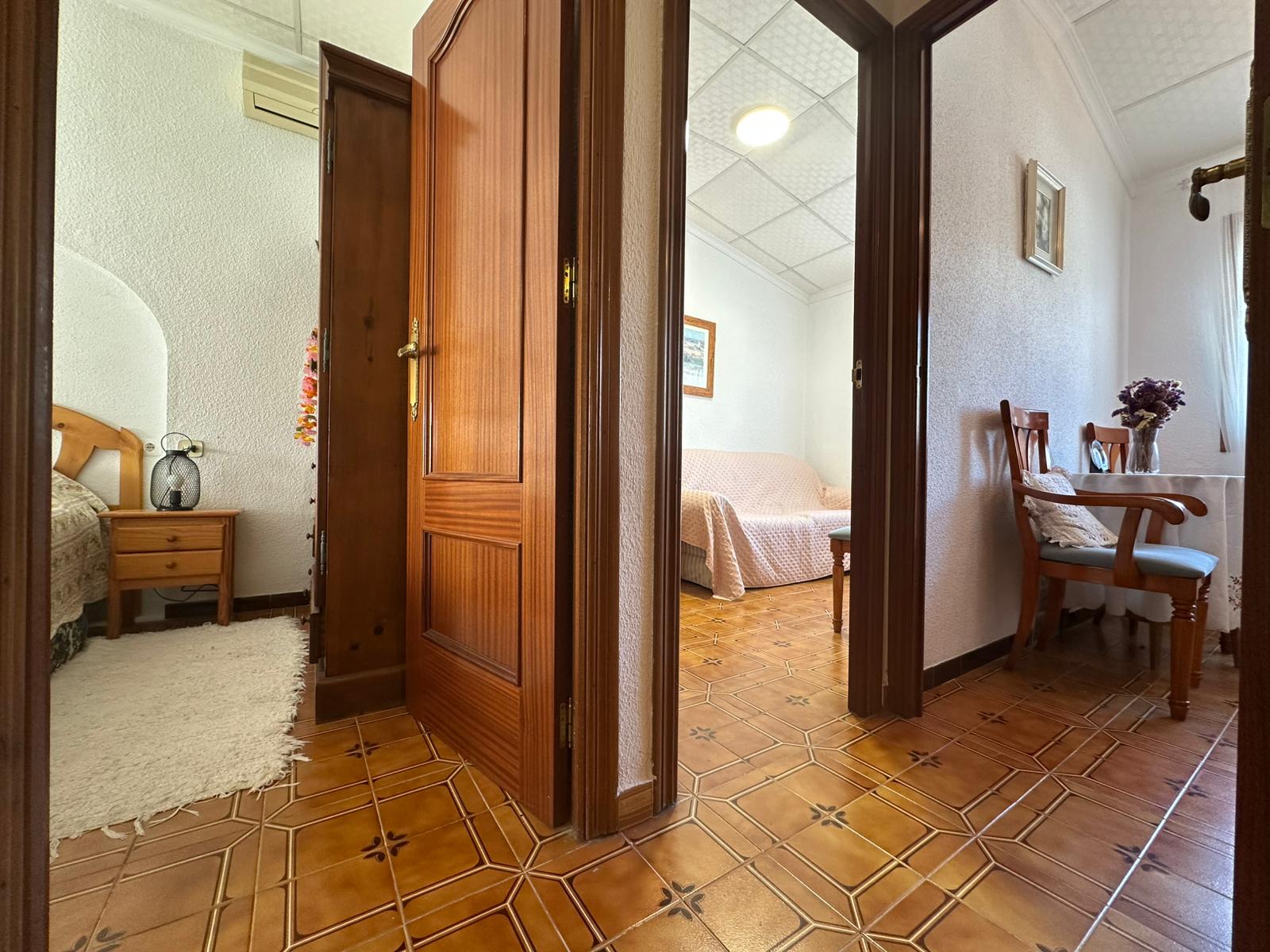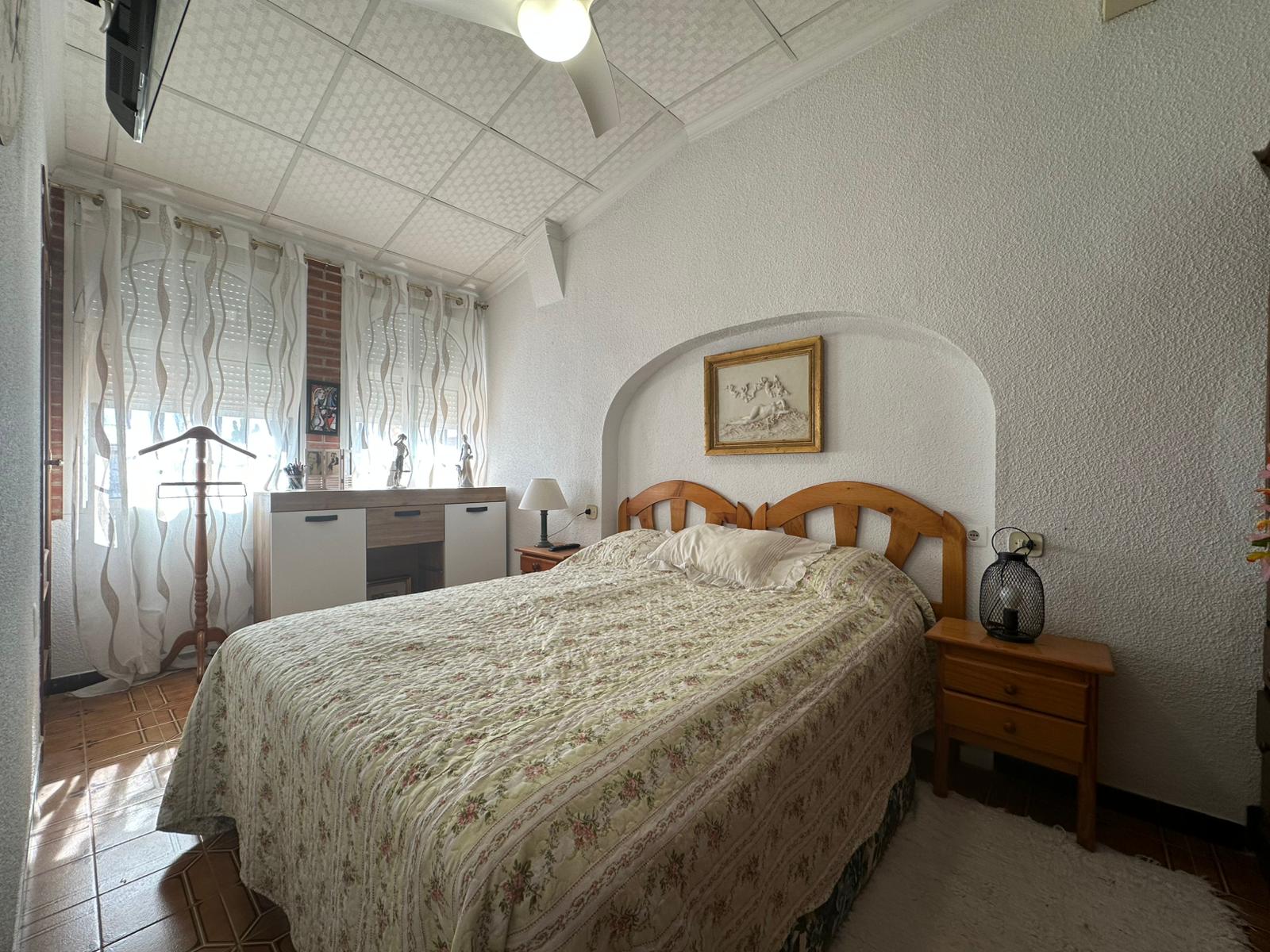Z przyjemnością prezentujemy Państwu skrajny dom szeregowy, usytuowany w zachodniej części Torrevieja, zaledwie 350 m od piaszczystej plaży Los Náufragos. Parter przeszedł gruntowną renowację, natomiast piętro zachowało nienaganną kondycję techniczną – dzięki temu nieruchomość jest gotowa do zamieszkania od zaraz. Co równie istotne – nie ponoszą Państwo żadnych opłat comunidad, a podatek IBI wynosi jedynie 203 € rocznie.